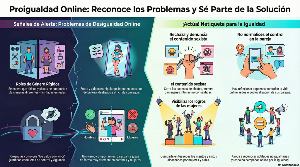 El entorno digital, que incluye plataformas como redes sociales, grupos de WhatsApp y videojuegos online, se ha convertido en un espacio propicio para la propagación y amplificación de actitudes contrarias a la igualdad. Estas conductas, que a menudo se manifiestan de manera sutil a través de micro-violencias o discriminación, tienen un impacto severo en el bienestar psicosocial y el desarrollo de los menores, pudiendo causar desde daño a la reputación y exclusión social hasta secuelas como ansiedad, estrés y un deterioro de la autoestima.