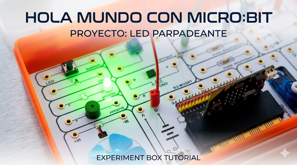 1. Introducción En este primer proyecto vamos a controlar un componente de salida básico: un Diodo LED. Aprenderemos a enviar señales digitales desde la Micro:bit para encender y apagar un componente externo de forma cíclica. 2. Material necesario 3. Explicación …