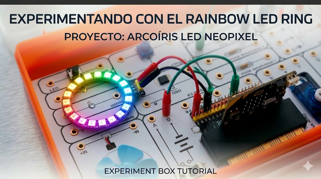 1. Introducción En este proyecto aprenderemos a controlar una matriz circular de LEDs direccionables (NeoPixel). A diferencia de un LED normal que solo se enciende o apaga, cada LED en este anillo puede cambiar a cualquier color de forma independiente. …
